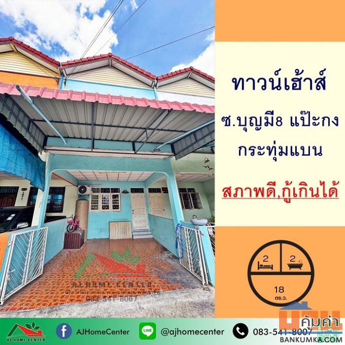 ขายทาวน์โฮม 2 ชั้น หมู่บ้านพฤกษา 117 เพชรเกษม 91 พุทธสาคร อ.กระทุ่มแบน จ.สมุทรสาคร ขาย 2,490,000 บาท