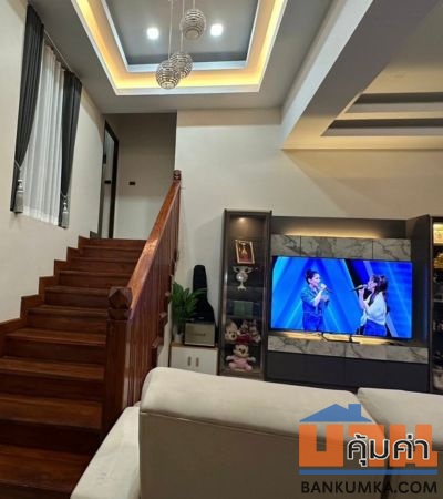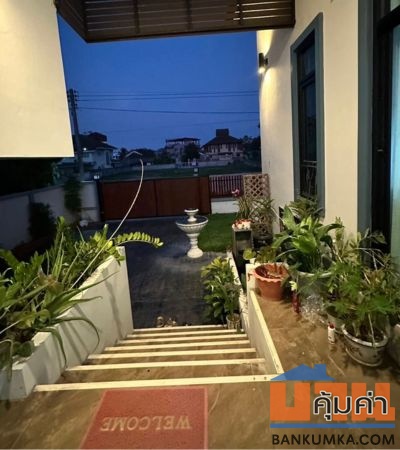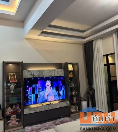 กาญจน์กนก 20 (ใกล้แยกรวมโชค) พื้นนรอบบ้านปูไม้เชอร่า พร้อมเฟอร์นิเจอร์ครบ เช่า 35,000 บาท/เดือน