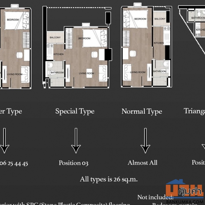 ขนาดพื้นที่ ( ทุกห้อง ) : 26 ตร.ม.